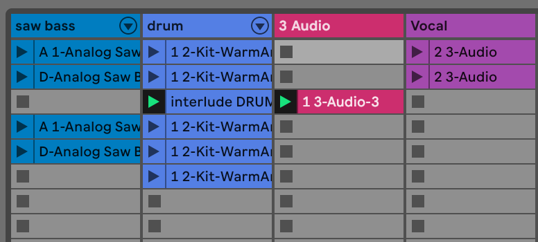 比如,音乐制作软件越来越视觉化,让音乐创作、后期制作变成一种视觉体验,更少倚赖耳朵。同时,人机交互界面重构了音乐人的「心-手-脑」协调机制,原声乐器和数字音符(MIDI)之间的边界也更加模糊。下图是 Ableton Live 的界面,一段 MIDI 乐句,和一段人声录音,都被一视同仁叫作 Clip。