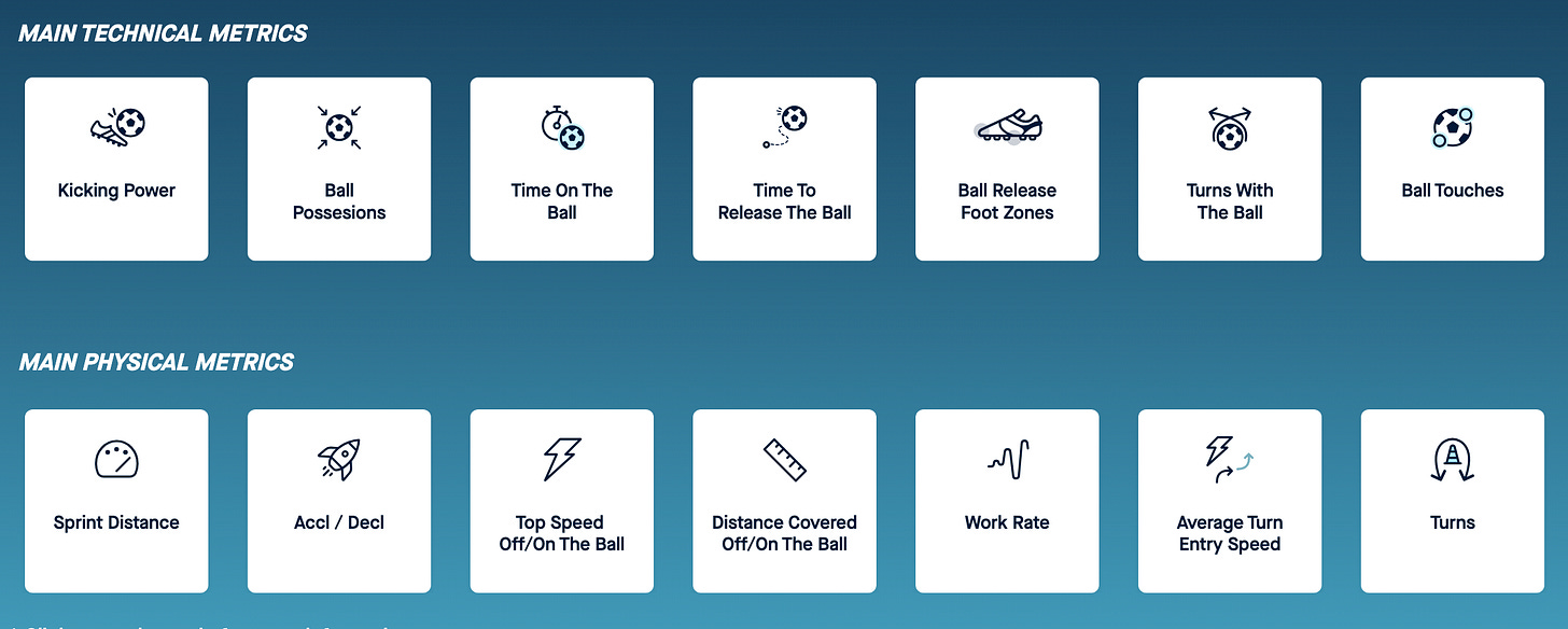 我们自己简单跑个步,心肺血氧、配速里程尚能被手环收录,更何况职业运动员呢。鞋上绑着的、背心里藏着的,都是传感器,场上场下表现巨细靡遗,全部数据化,成为后续分析的基础。做教练的你我,再身经百战,也不可能靠肉体凡胎获得下方配图里的诸多指标。至于相貌、个性、志向、才气等等,那都不是你,数据才是。教练手下的球员,今天成了参数的载体、教练思想的执行器官。